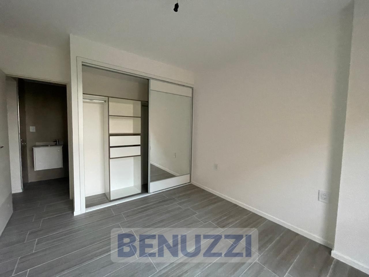 A estrenar: 2 dormitorios con placard con interiores, pisos de porcelanatos, living-cocina-comedor con gran balcón al frente, con mesada, alacenas, baño.