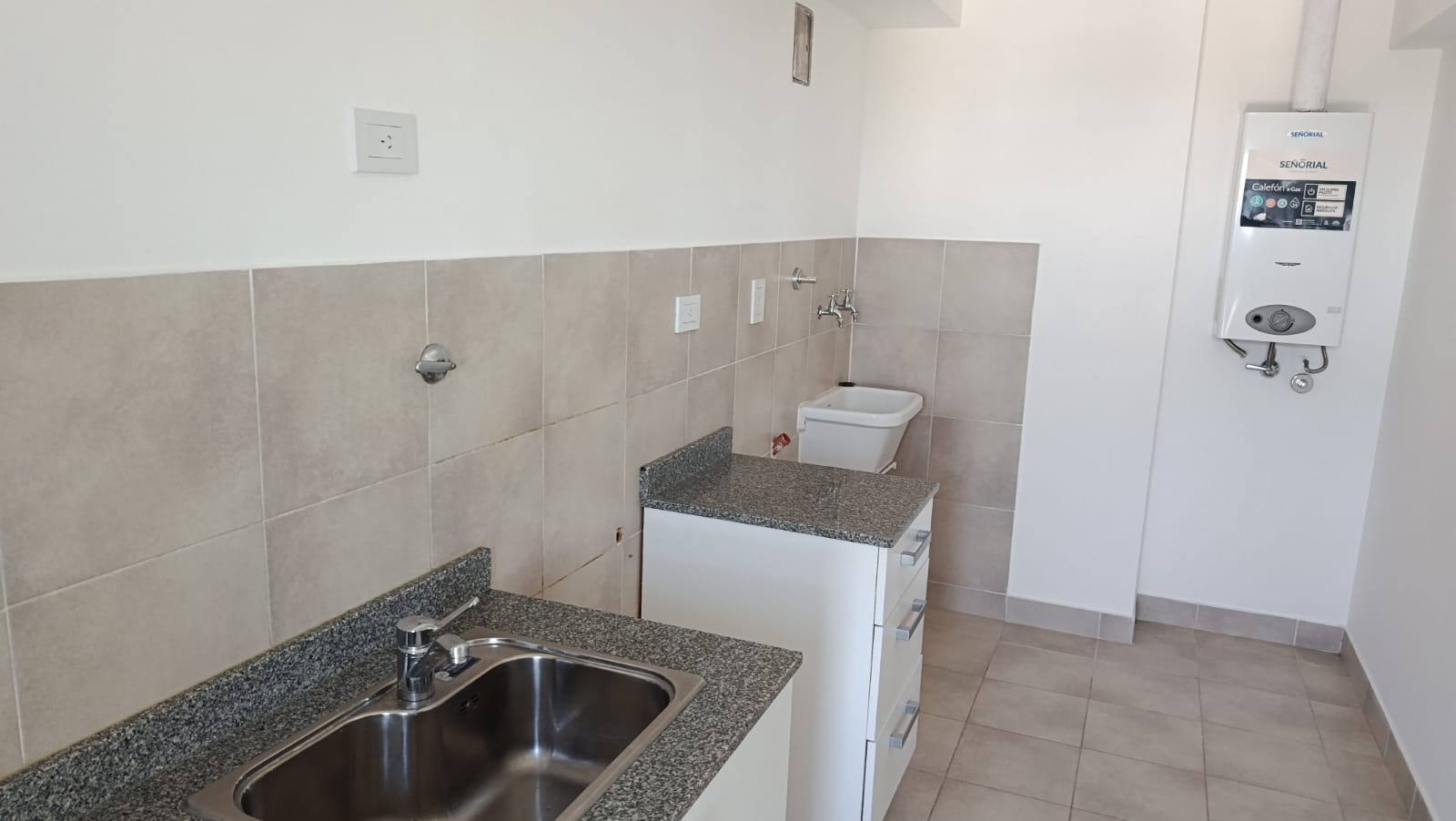 1 dormitorio con placard, con cortina blackout, living-comedor con balcón al parque, cocina sectorizada, con mesada, calefón, lavadero, baño con bañera. Agua caliente gas natural
