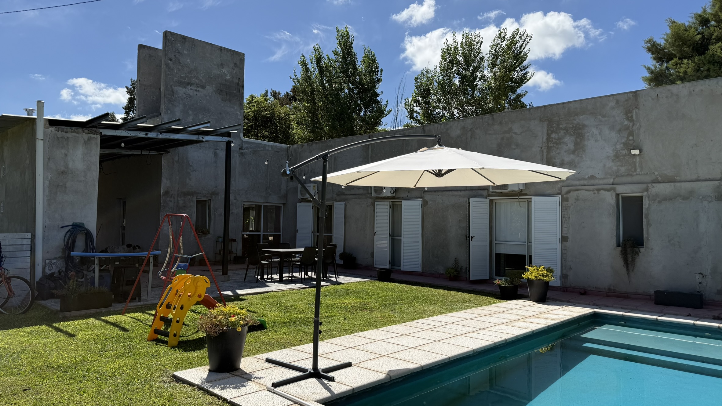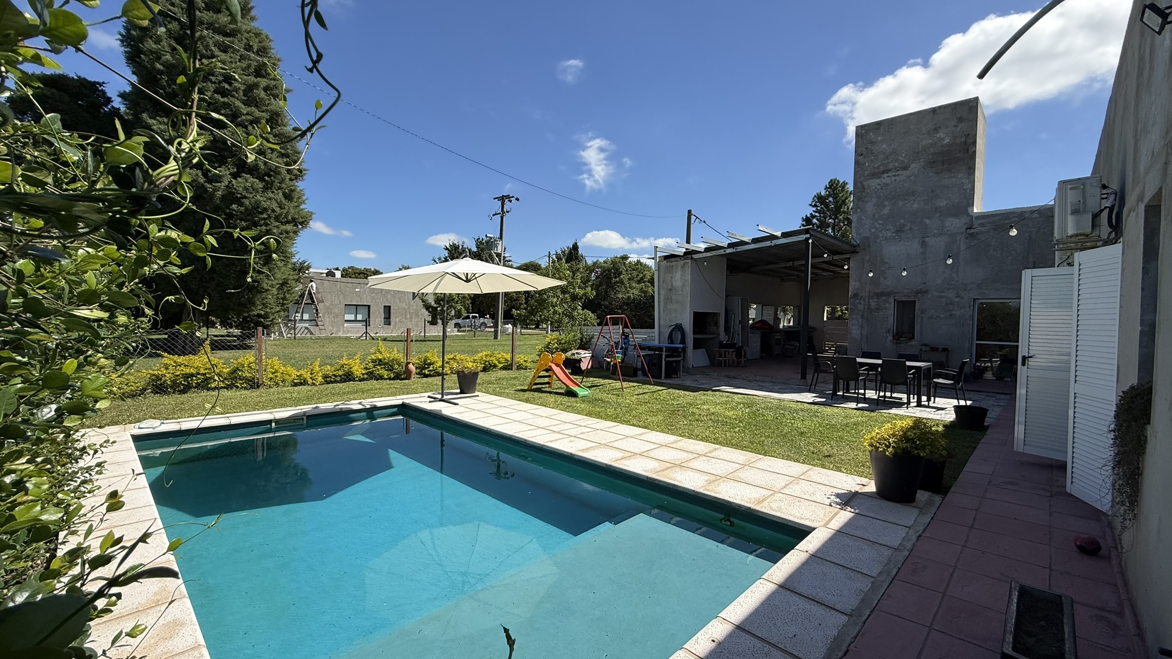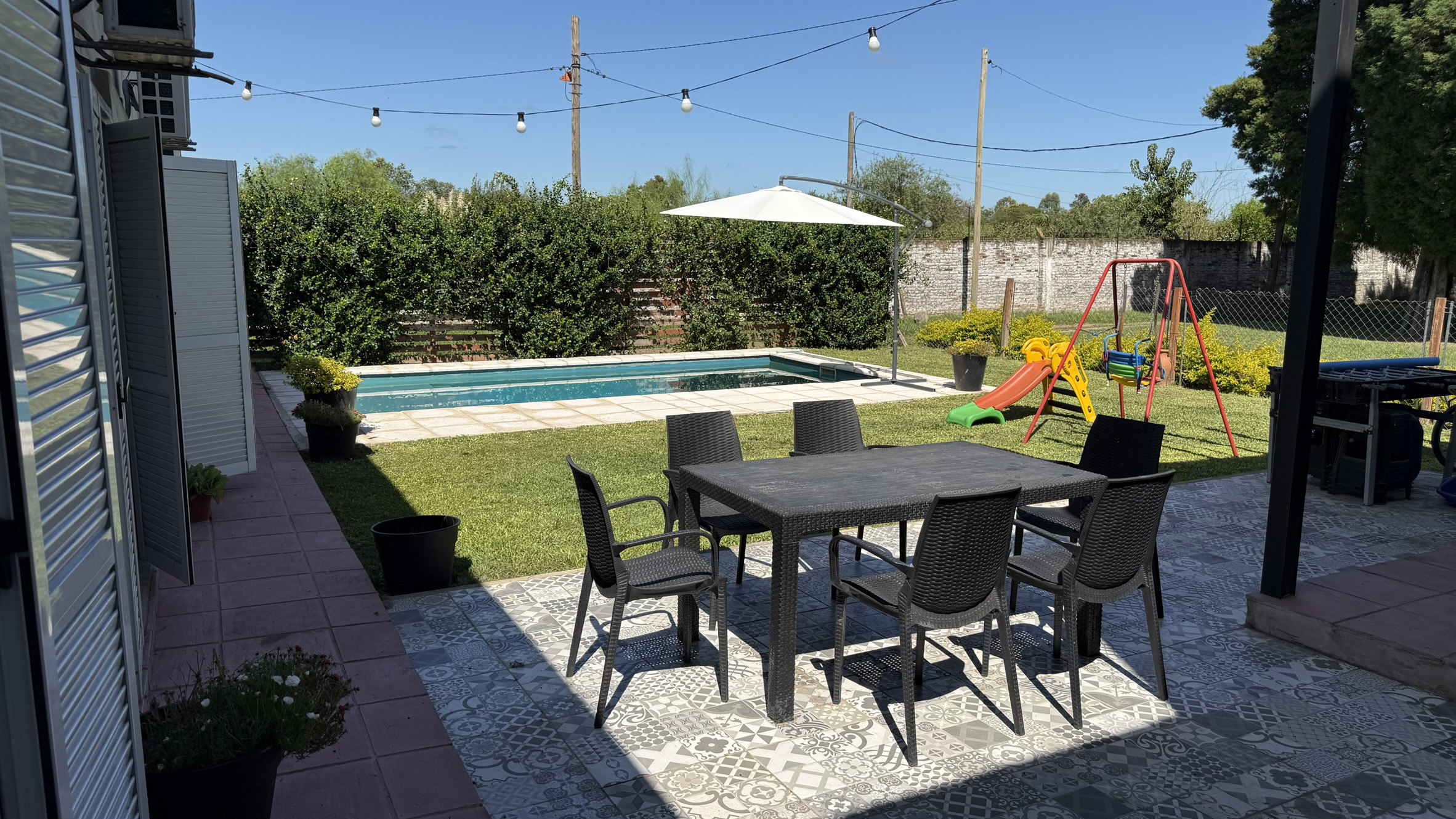 La propiedad está desarrollada en planta baja, al frente tiene jardín, ingreso vehicular, se ingresa por un amplio living comedor, baño completo, cocina separada con amoblamientos completos con salida al patio y galería con asador, lugar para guardar el auto. Cuatro dormitorios, dos (2) baños completos y uno con antebaño. Amplio patio con jardín y pileta