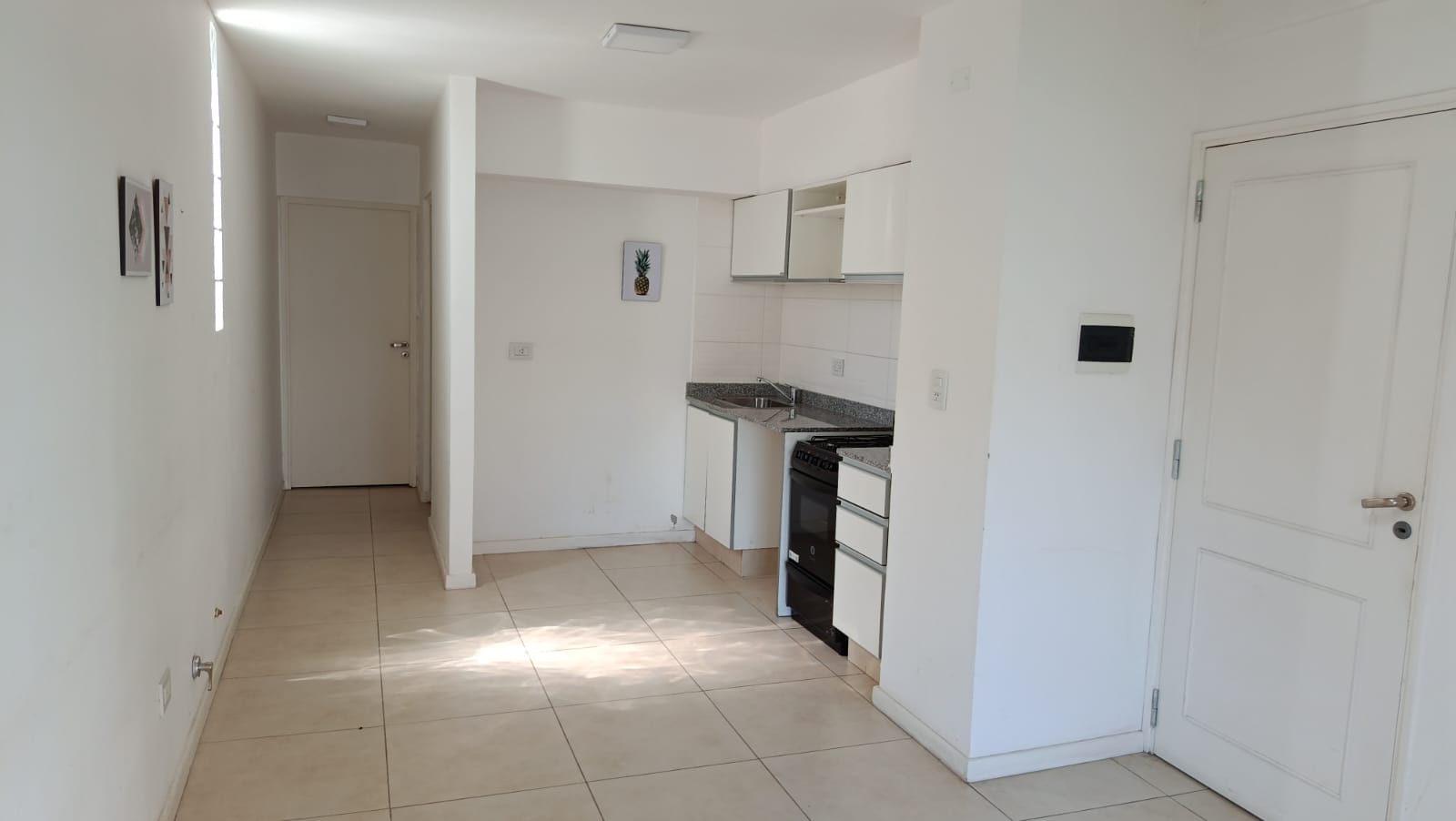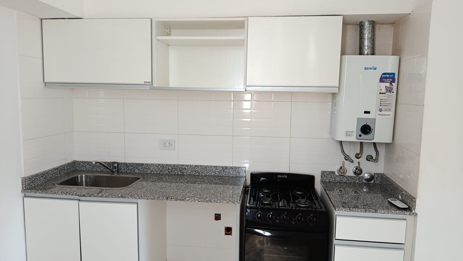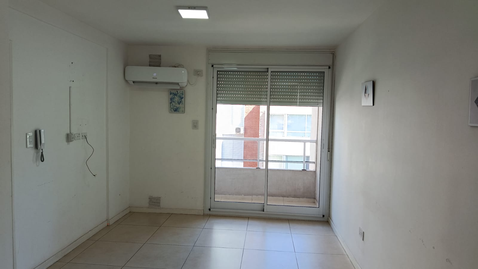 1 dormitorio con placard con interiores, acond de aire, amplio living-comedor-cocina, con acond de aire, mesada, artefacto de cocina, calefón, alacenas, balcón al frente, baño, agua caliente gas natural. Cochera
