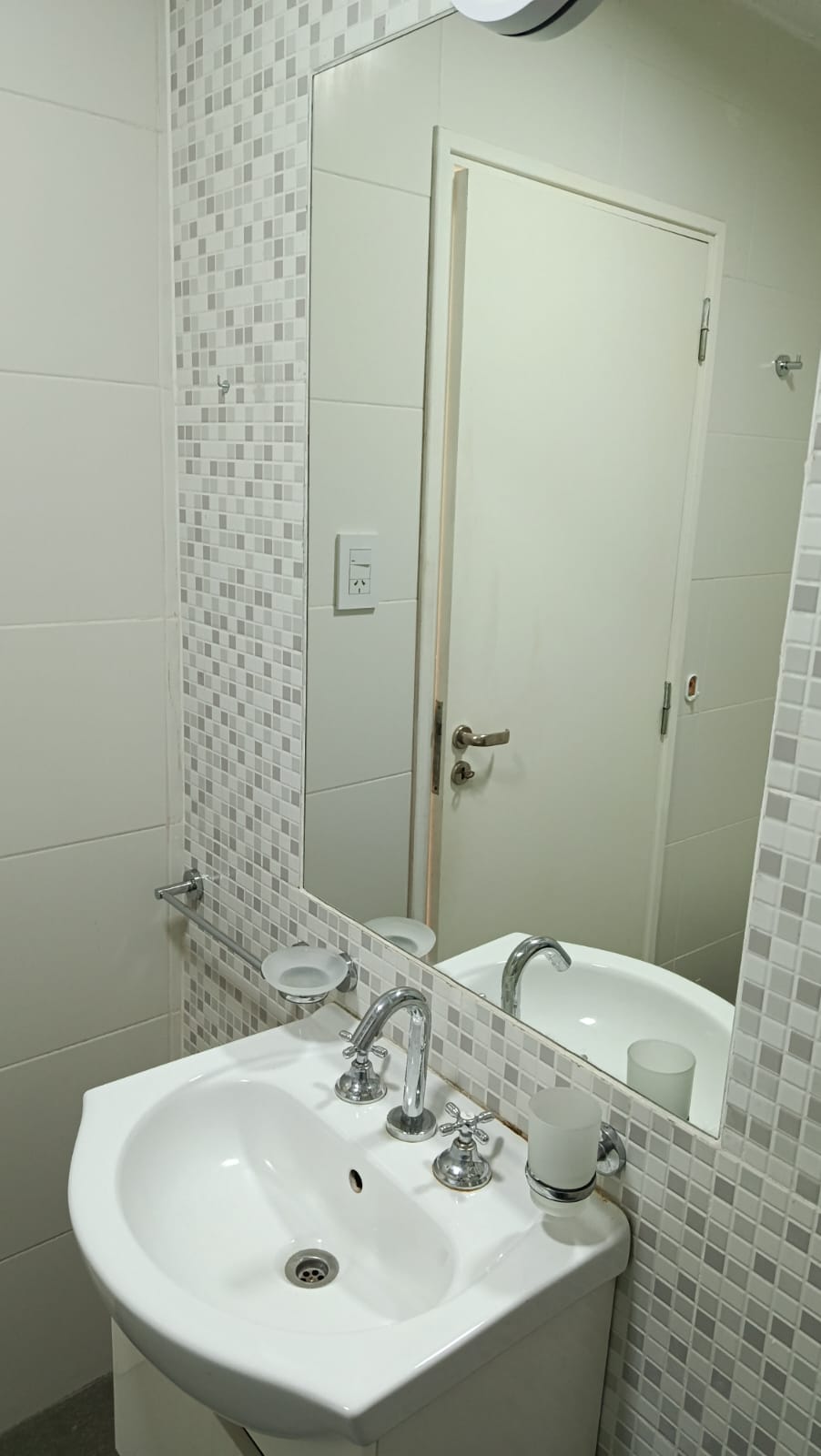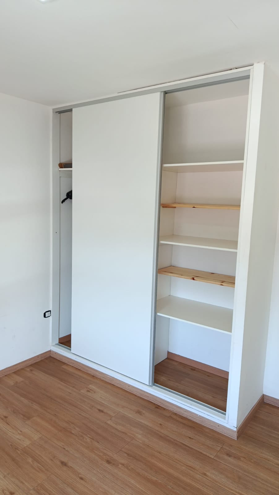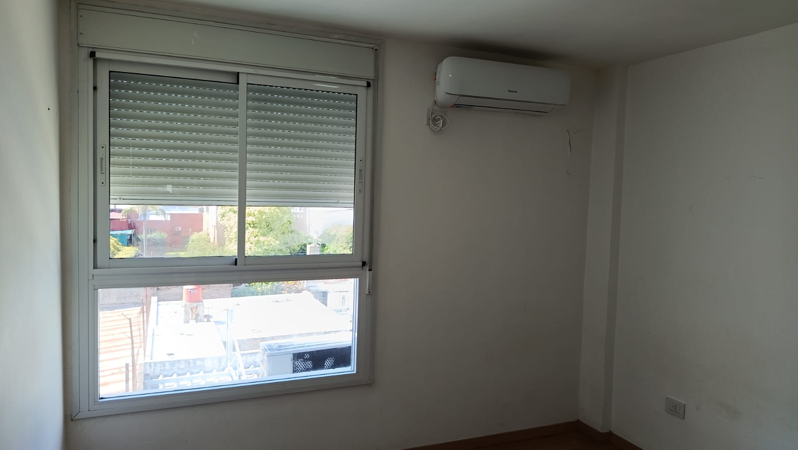 1 dormitorio con placard con interiores, acond de aire, amplio living-comedor-cocina, con acond de aire, mesada, artefacto de cocina, calefón, alacenas, balcón al frente, baño, agua caliente gas natural. Cochera