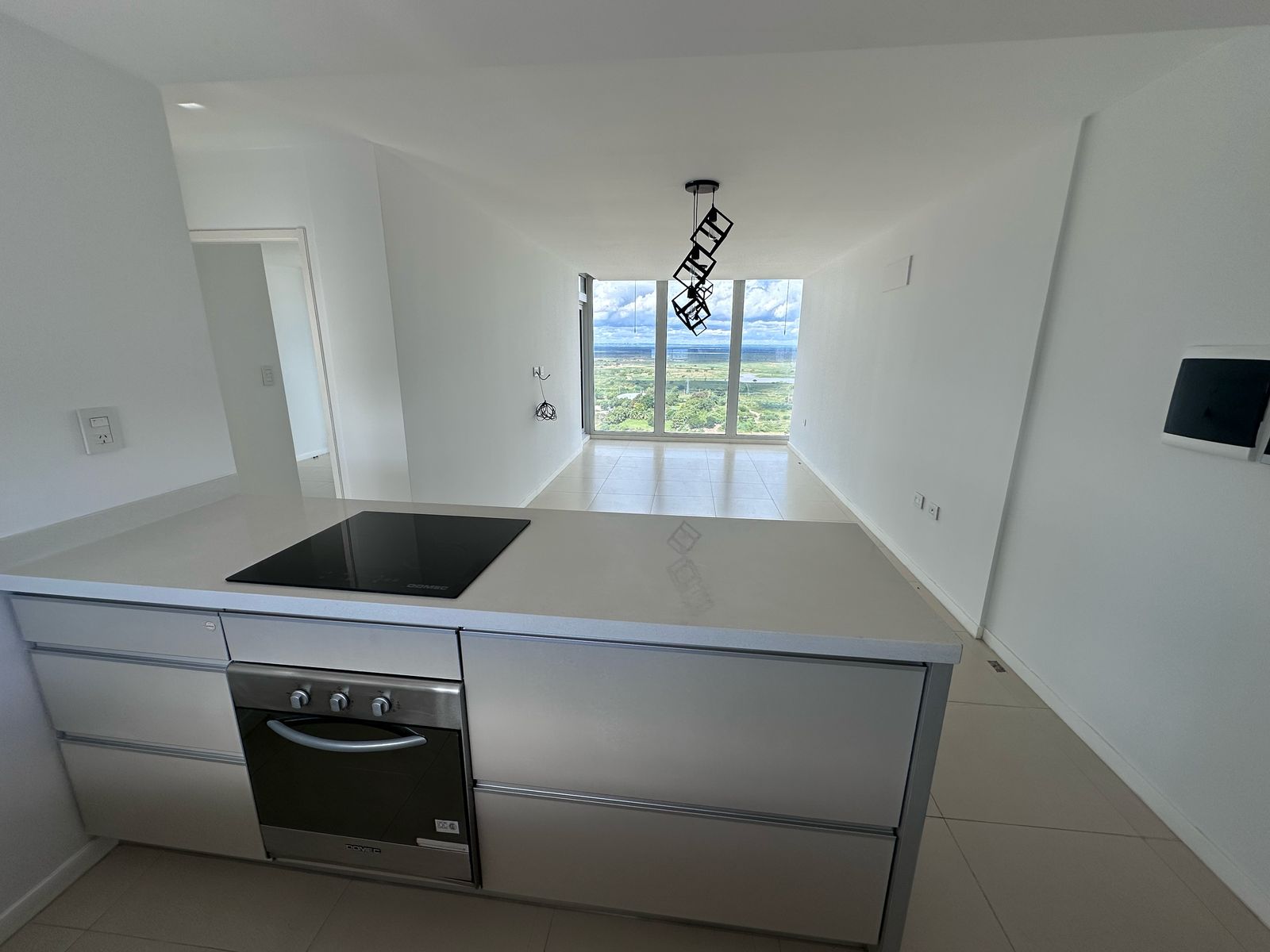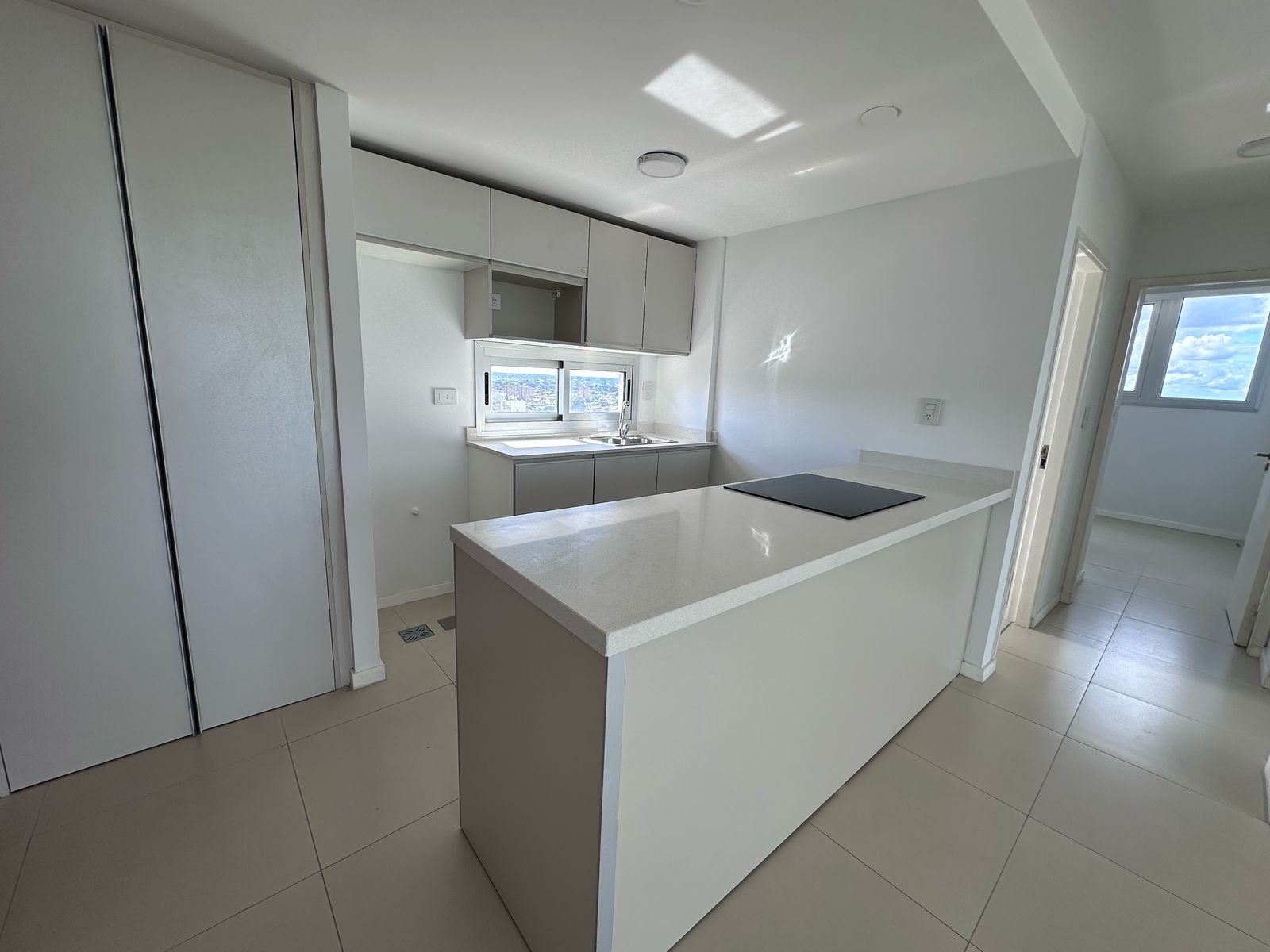 Cuenta con dos dormitorios con placares (uno de ellos en suite), un amplio y confortable estar comedor con grandes ventanales, y una cocina sectorizada moderna con isla, horno y anafe.