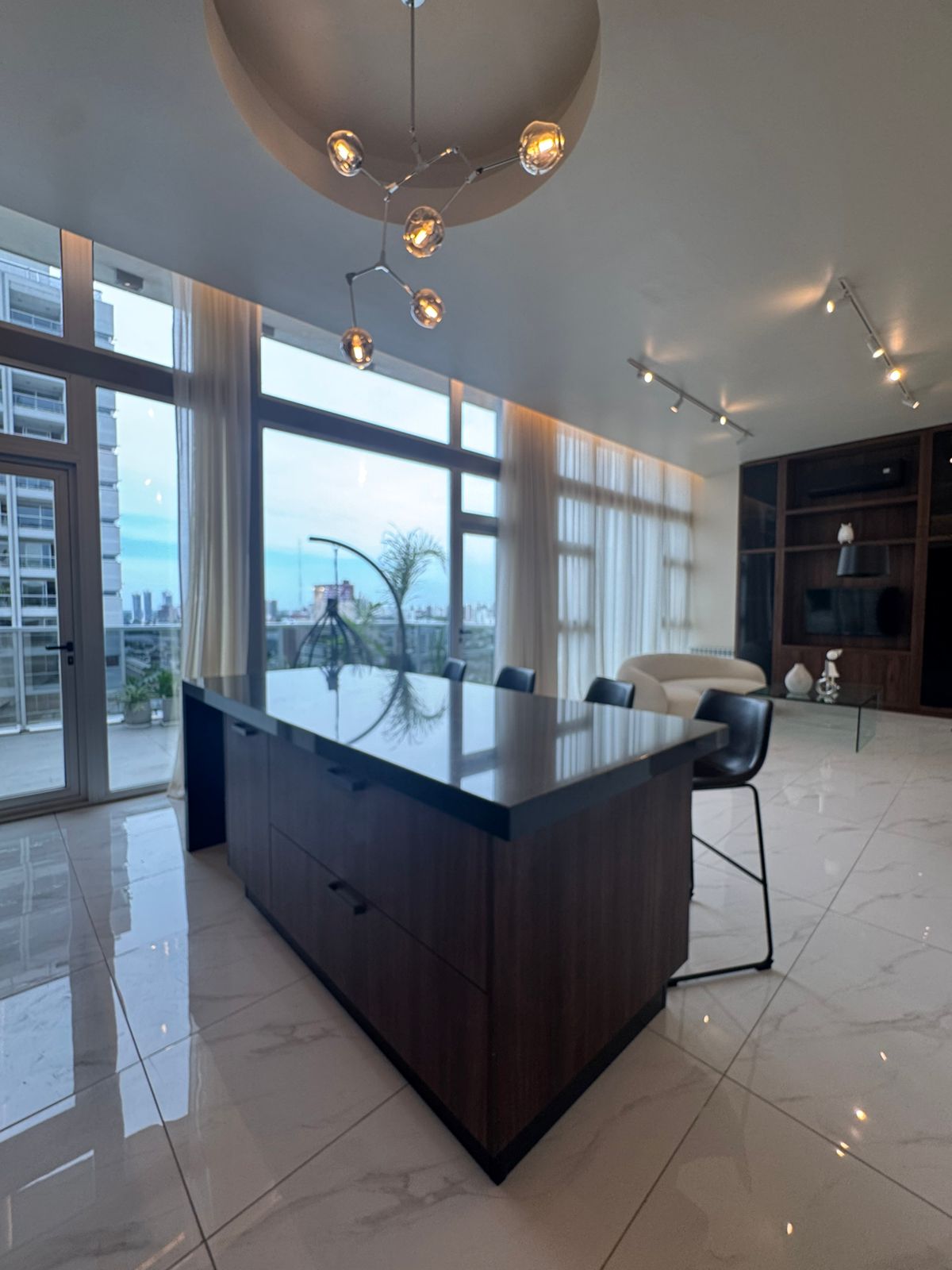 Penthouse ubicados en piso once desarrollado en dos plantas. La planta baja cuenta con un living-comedor, cocina con amoblamiento premium, baño social y tres dormitorios. La master suite cuenta con vestidor propio y baño en suite. Los otros dos dormitorios cuentan con placare. En el distribuidor de los dormitorios hay un espacio para escritorio o biblioteca, y un baño completo.