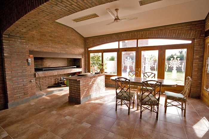 Planta baja: hall de ingreso con jardín, distribuidor, home-office que puede funcionar como dormitorio en PB, living con hogar a leña, comedor principal, bodega, cocina comedor diario, lavadero independiente con patio tendedero, baño social. Cocheras y quincho con asador, sala de máquinas con depósito y baño completo, sala de máquinas de piscina, riego artificial automatizado.