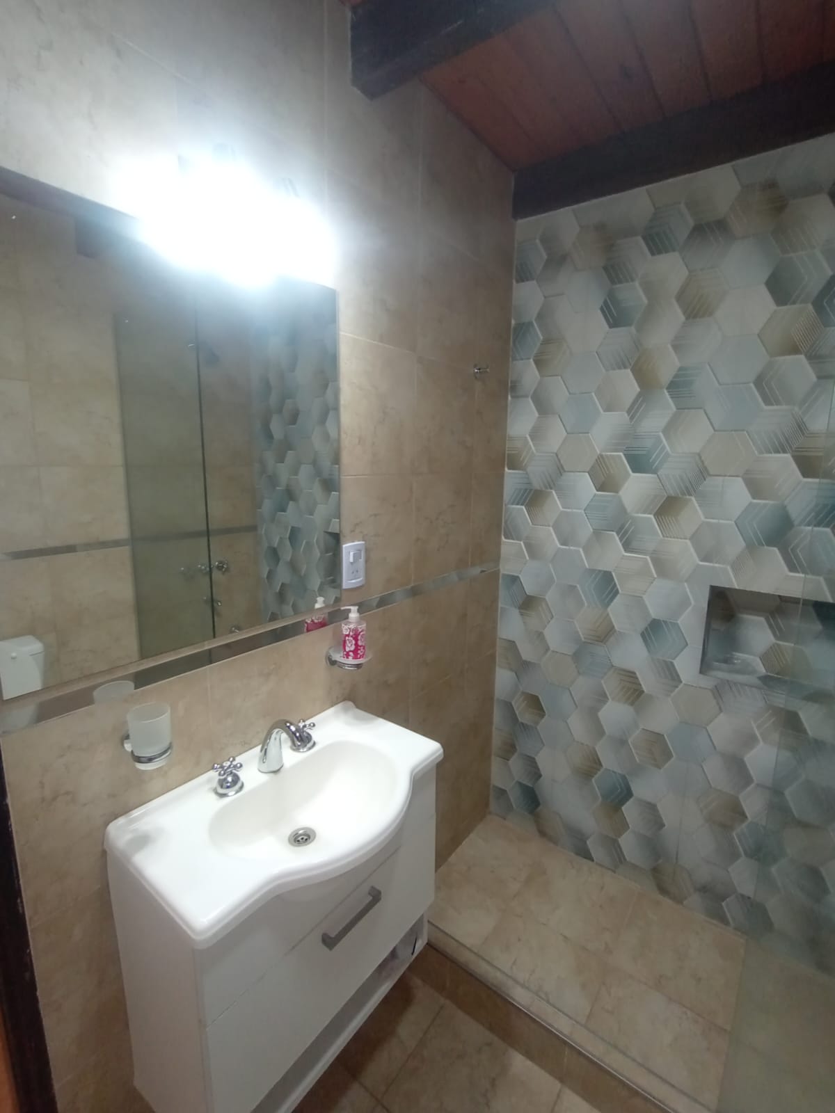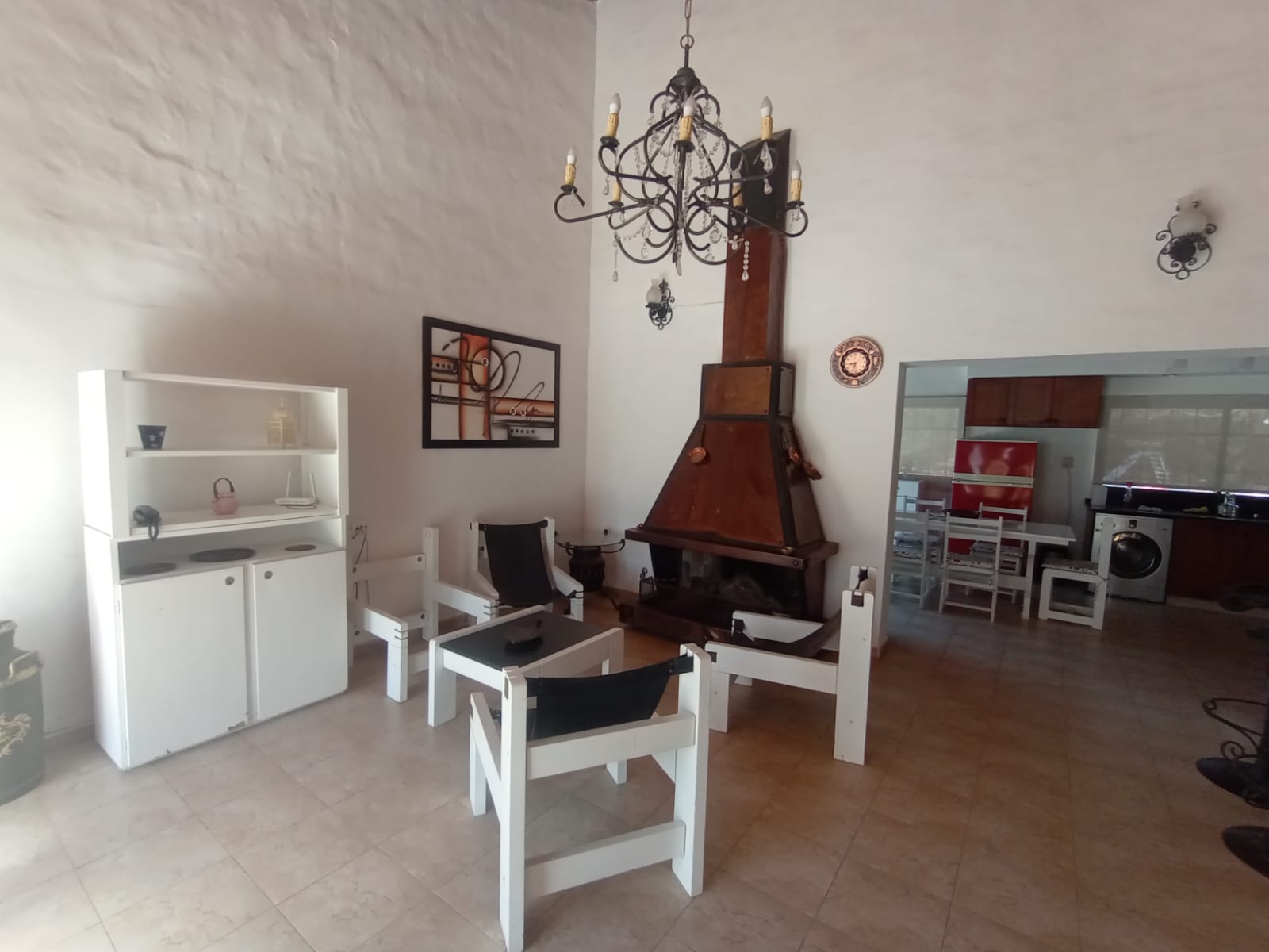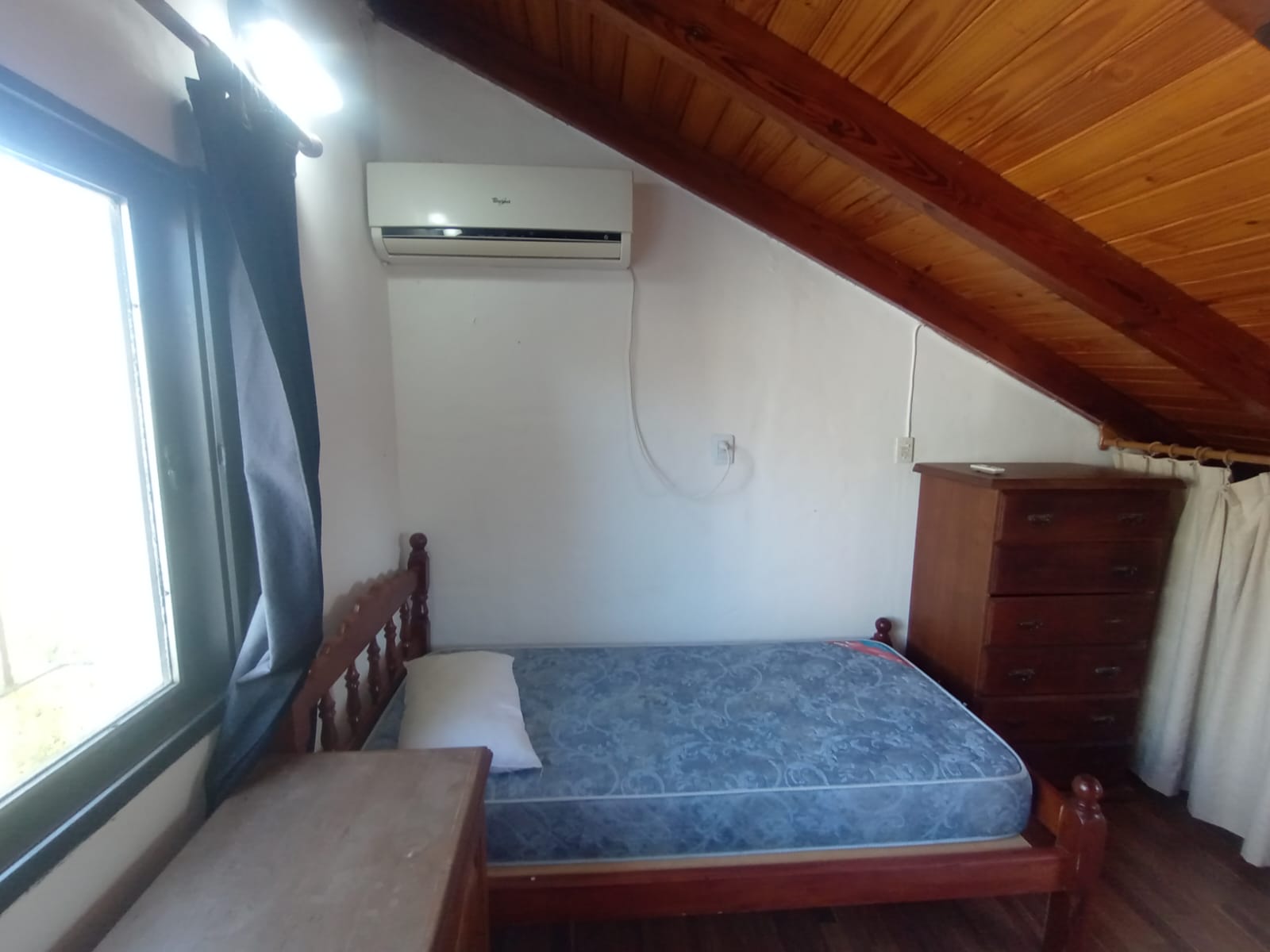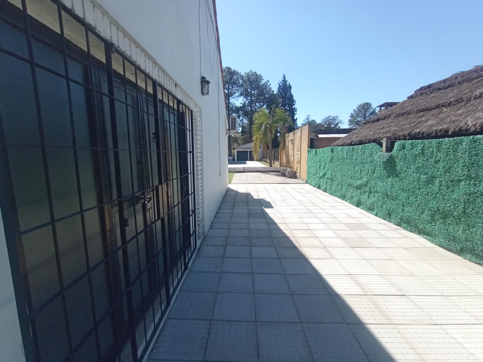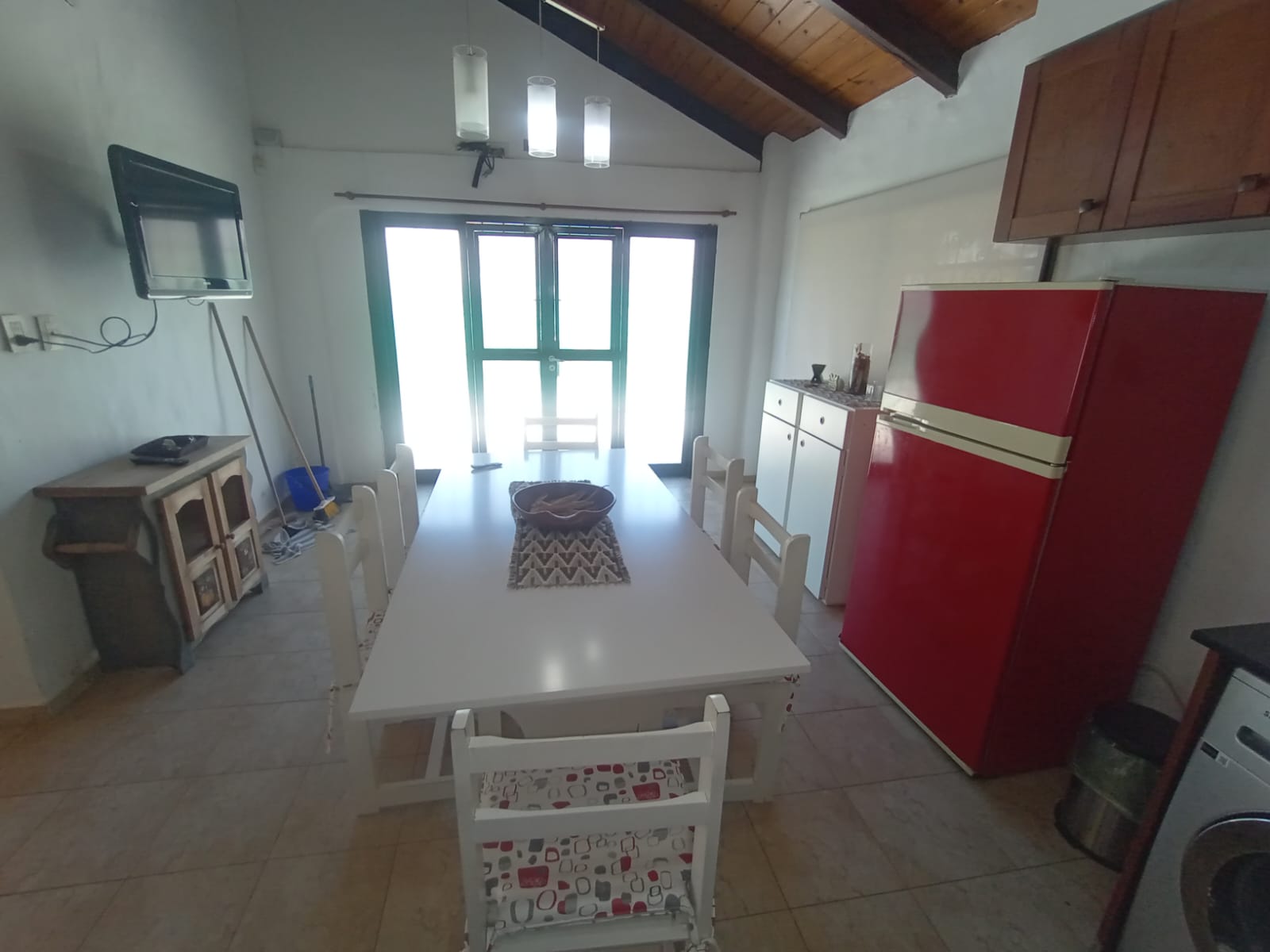 Muy linda propiedad sobre gran terreno que va de calle a calle: 2 dormitorios con placard, aire acond., ventiladores de techo, amplio living-comedor con techos altos, luminoso y ventilado, con juego de living, de comedor, aire acond., ventilador, hogar, baño, cocina-comedor amueblada, mesada, alacenas, cocina industrial, aire acond,. lavarropas, asador. Patio parquizado, con asador, horno de barro, gran pileta de natación con solarium, baño de servicio, lavadero.