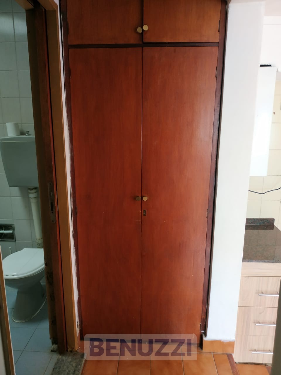 Living comedor con cocina equipada con bajo mesada, 1 dormitorio y baño completo. Placard ubicado en el antebaño para optimizar el espacio.