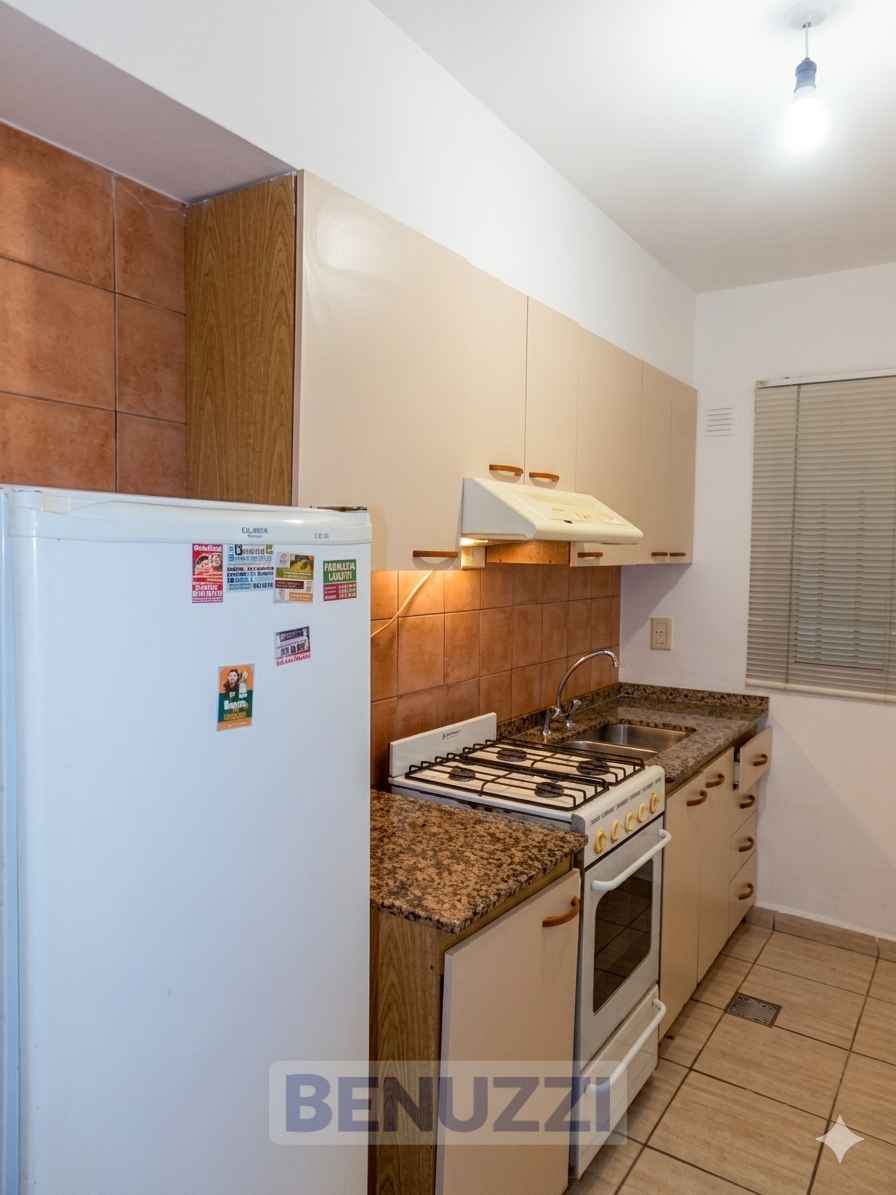 Dpto en planta baja del edificio consta de un dormitorio con placard, living-comedor con patiecito, cocina separada con mesada y alacenas,baño. Quedan dos acond de aires, 2 calefactores, 2 ventilador de techo, mesa y sillas, aparador chico,heladera, cocina, escritorio