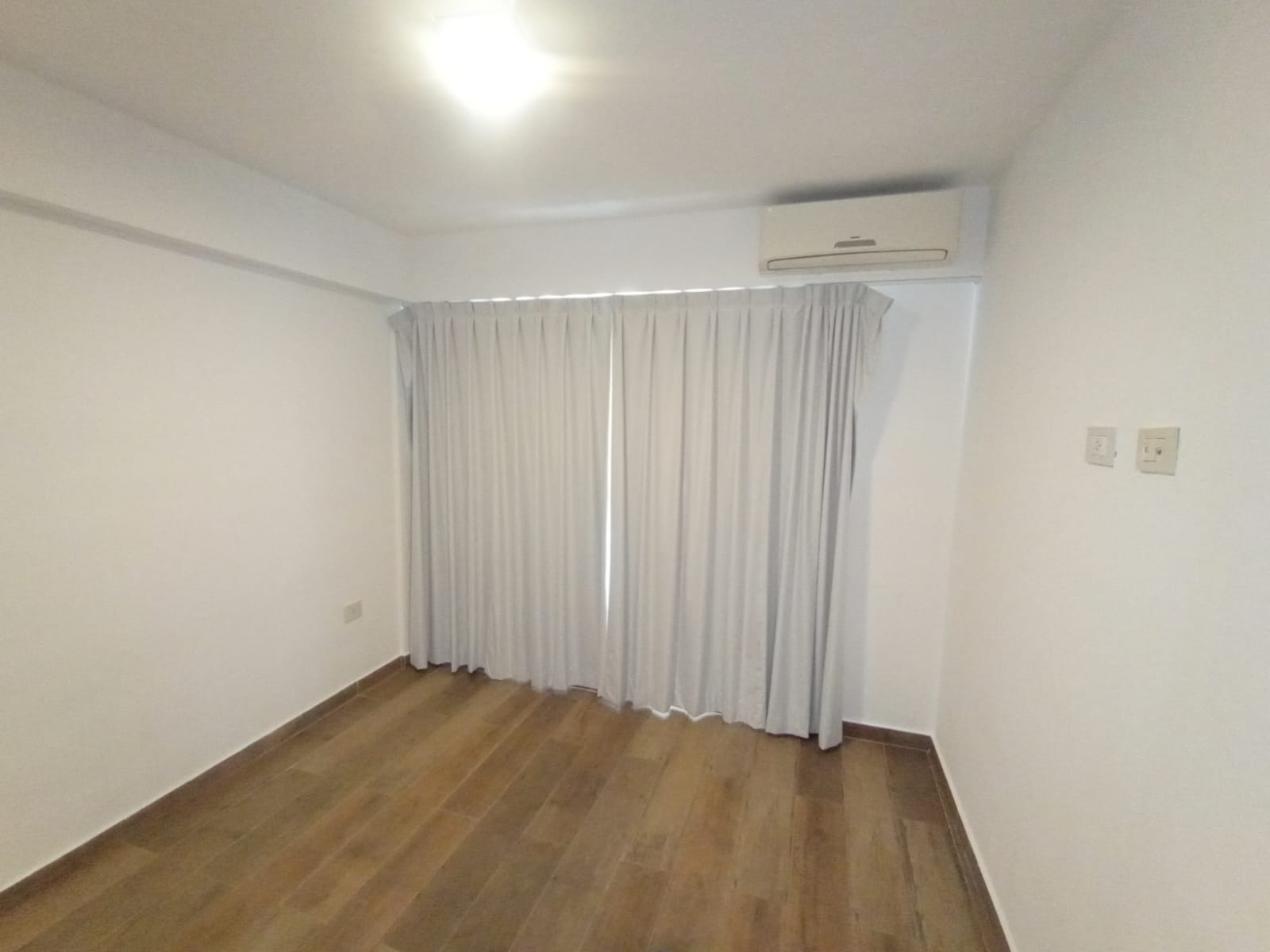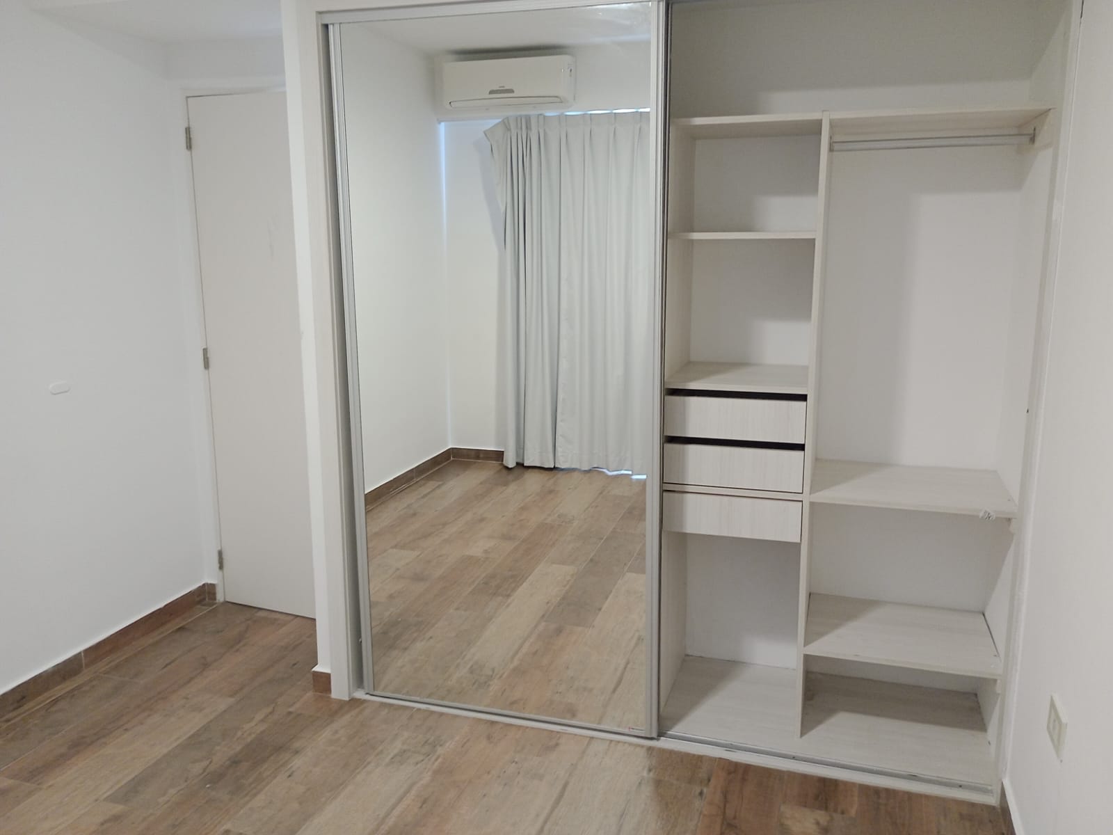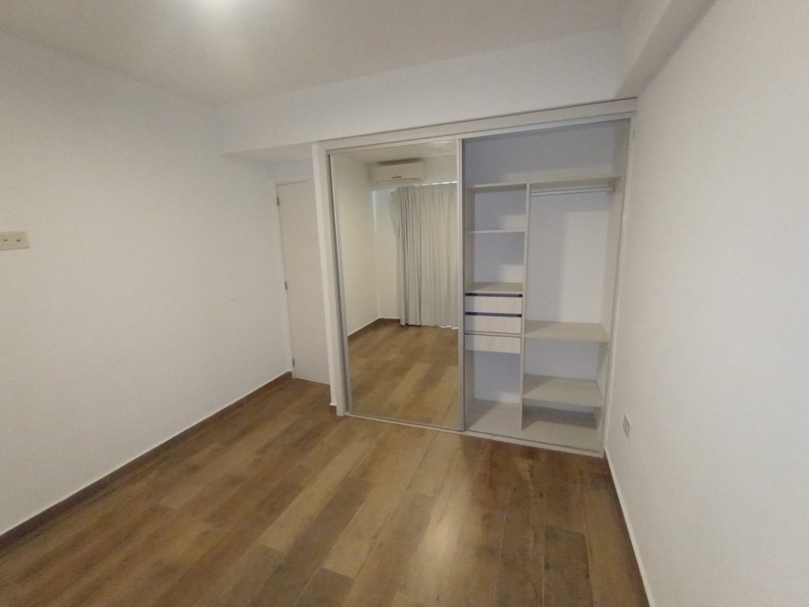 1 dormitorio con placard con interiores, cortinas, amplio living-comedor, cortinas, pisos del inmueble de porcelanato simil madera, barra, cocina amueblada, con mesada alacena, horno cocina, termotanque, baño con bañera. Balcón al con vista al rio. Edificio con SUM totalmente equipado, pileta con reposeras.