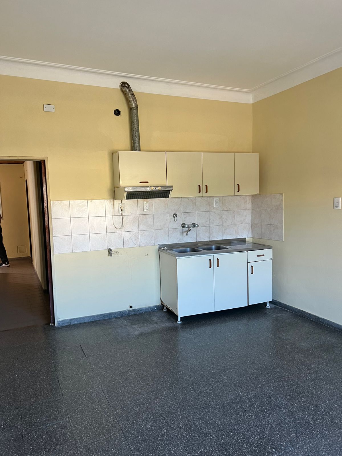Casa ubicada en el centro comercial de A del Valle: 2 dormitorios uno muy grande, con pisos de parquet, cocina-comedor con mesada y alacena, pasillo con placard, baño, pequeño balcón, gran terraza, agua caliente, gas natural.