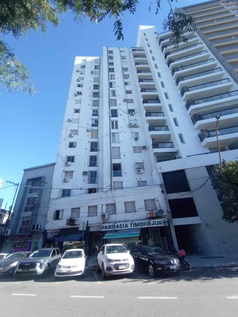 Microcentro. Amplio living-comedor, con ventanal a la plaza, cocina-comedor con mesada y alacenas, lavadero sectorizado, cubierto y cerrado, 2 dormitorios, baño con bañera.