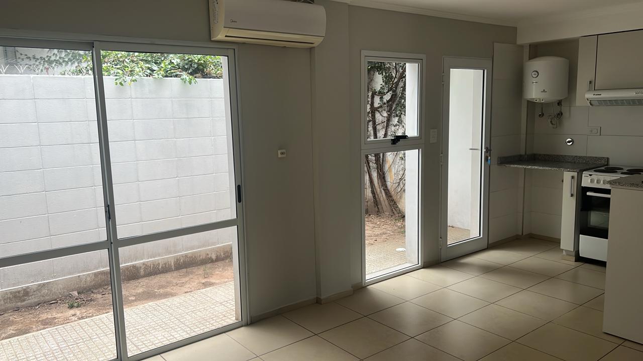 Departamento en planta baja: Consta de Living comedor cocina separado por barra con amoblamiento completo de cocina, artefacto de cocina, extractor, termotanque eléctrico, 1 dormitorio con placard con frentes espejados con interiores, baño con espejo, artefactos lumínicos, acondicionador de aire, patio y cochera.