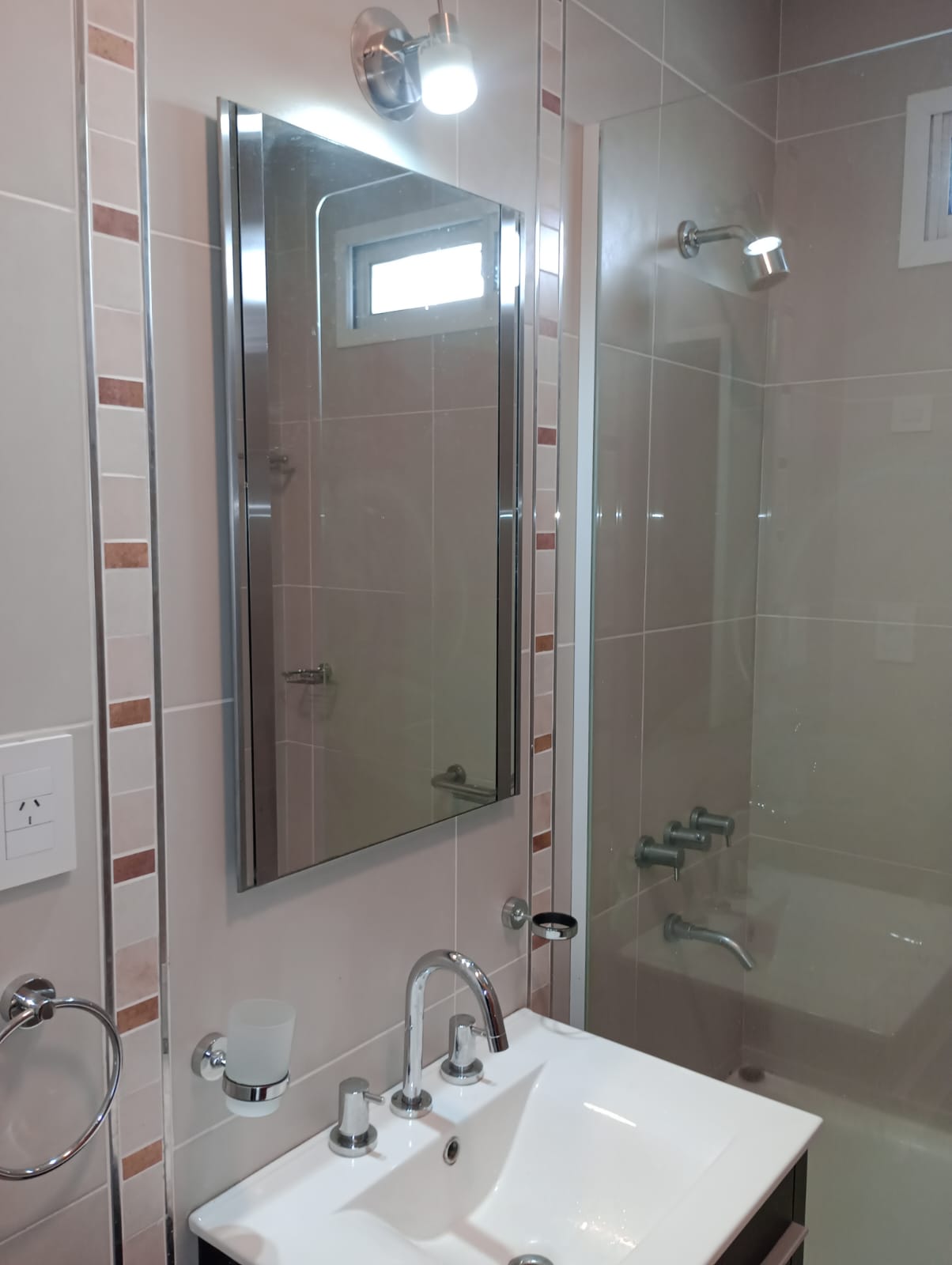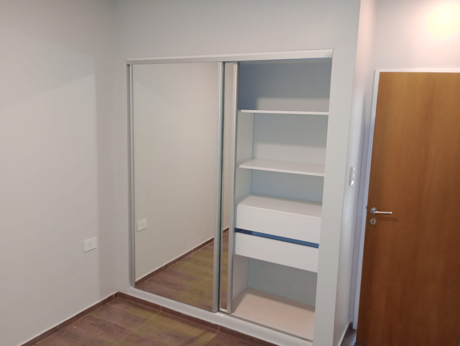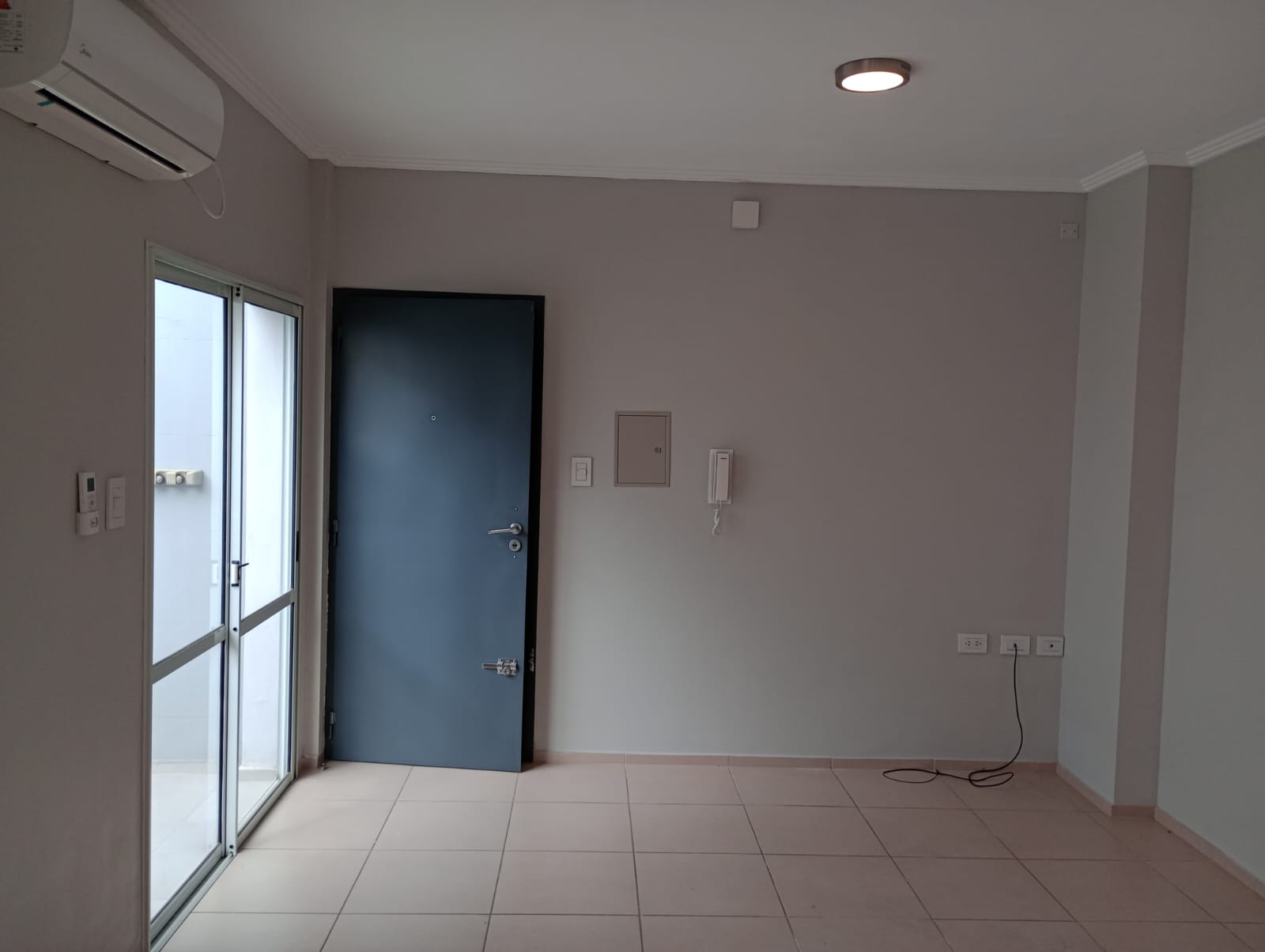 Living-comedor-cocina, separado por barra con mesada, alacenas, artefacto de cocina, extractor, termotanque eléctrico, aire acond.,.1 dormitorio con placard con interiores. Baño con espejo .Artefactos lumínicos, aires split. BALCÓN.