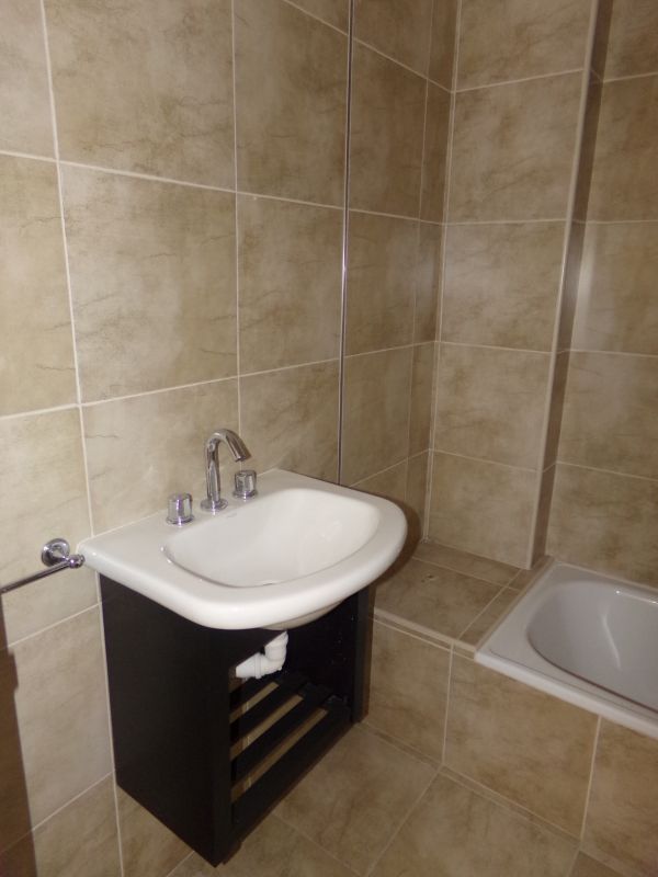1 Ambiente muy amplio, living-comedor muy luminoso, gran balcón, cocina con mesada, calefón, baño con bañera, pequeño patio, agua caliente, gas natural.