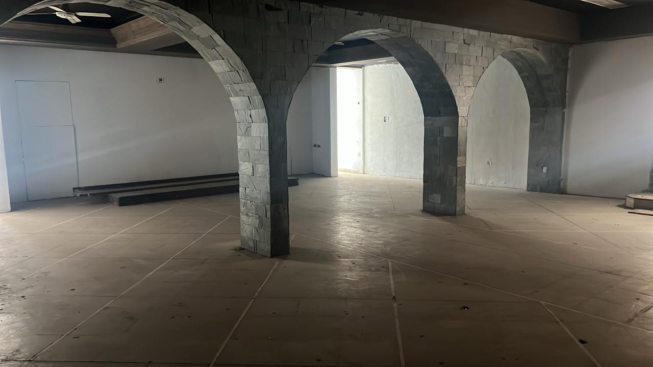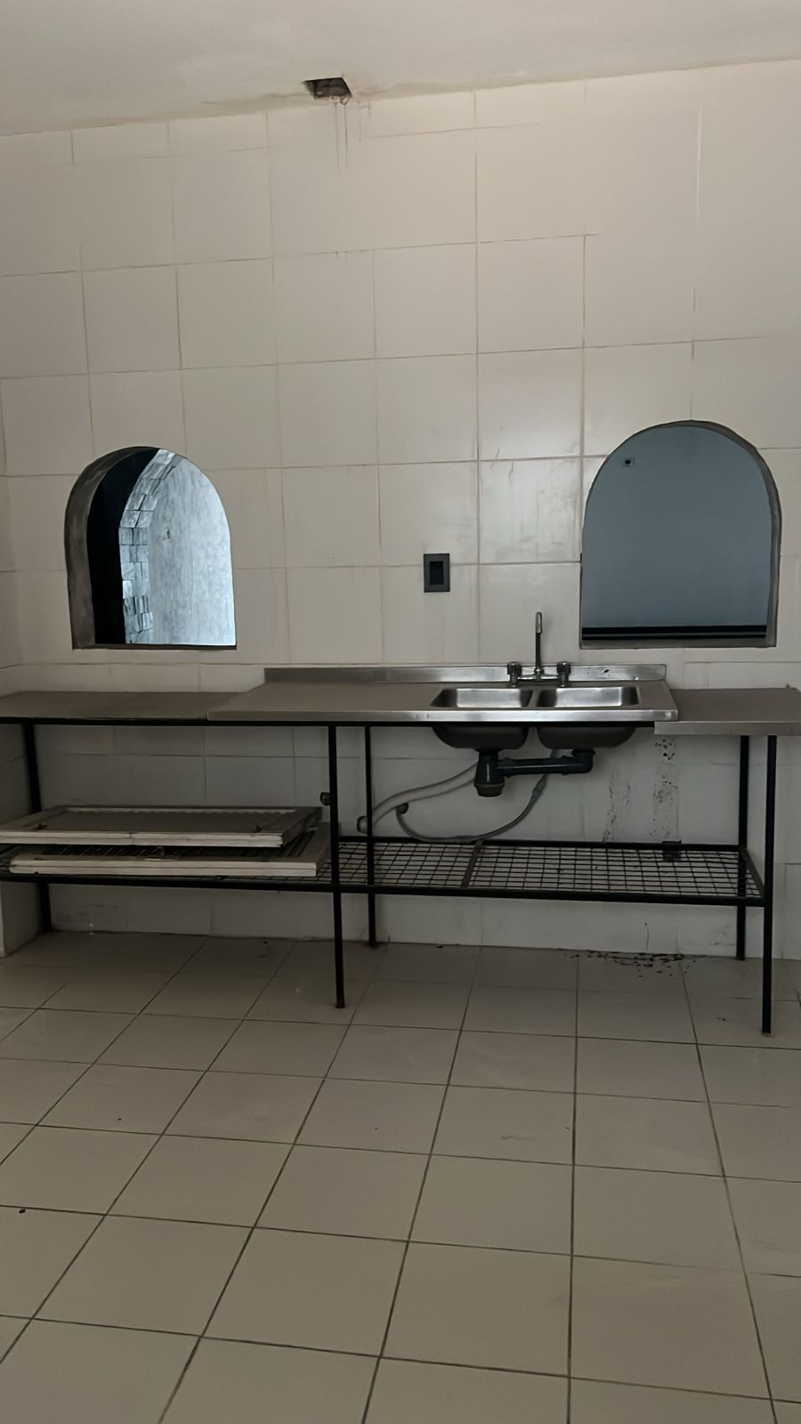 Planta baja: gran salón vidriado al frente, 2 oficinas privadas, 2 grupos de sanitarios más un tercer baño, cocina y patio interno.