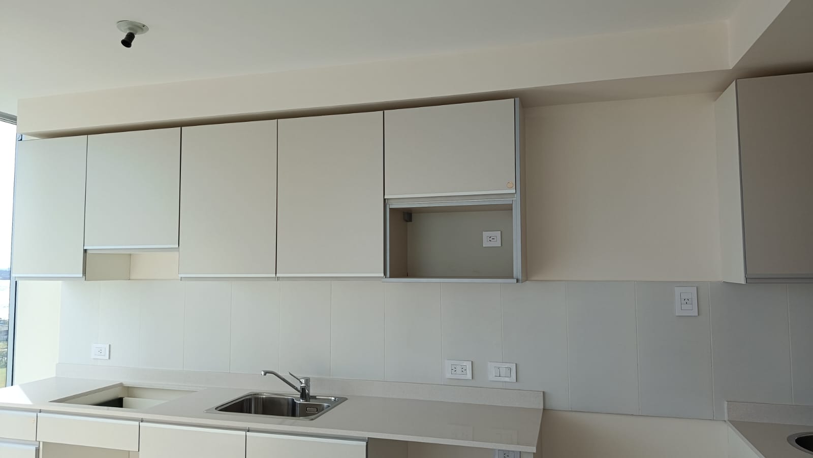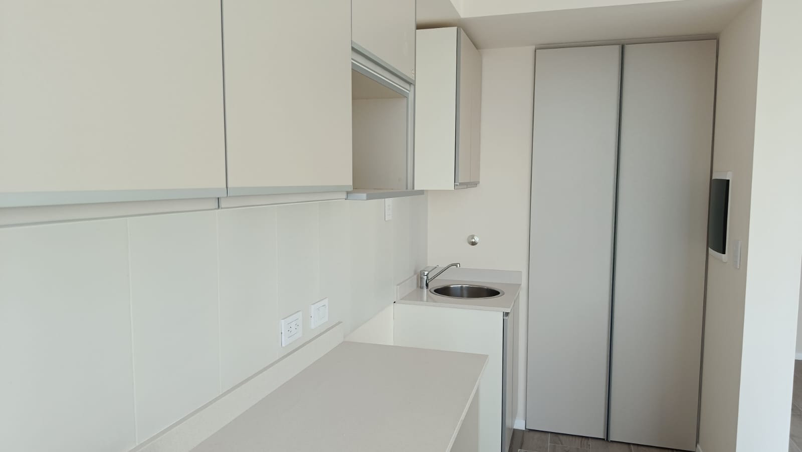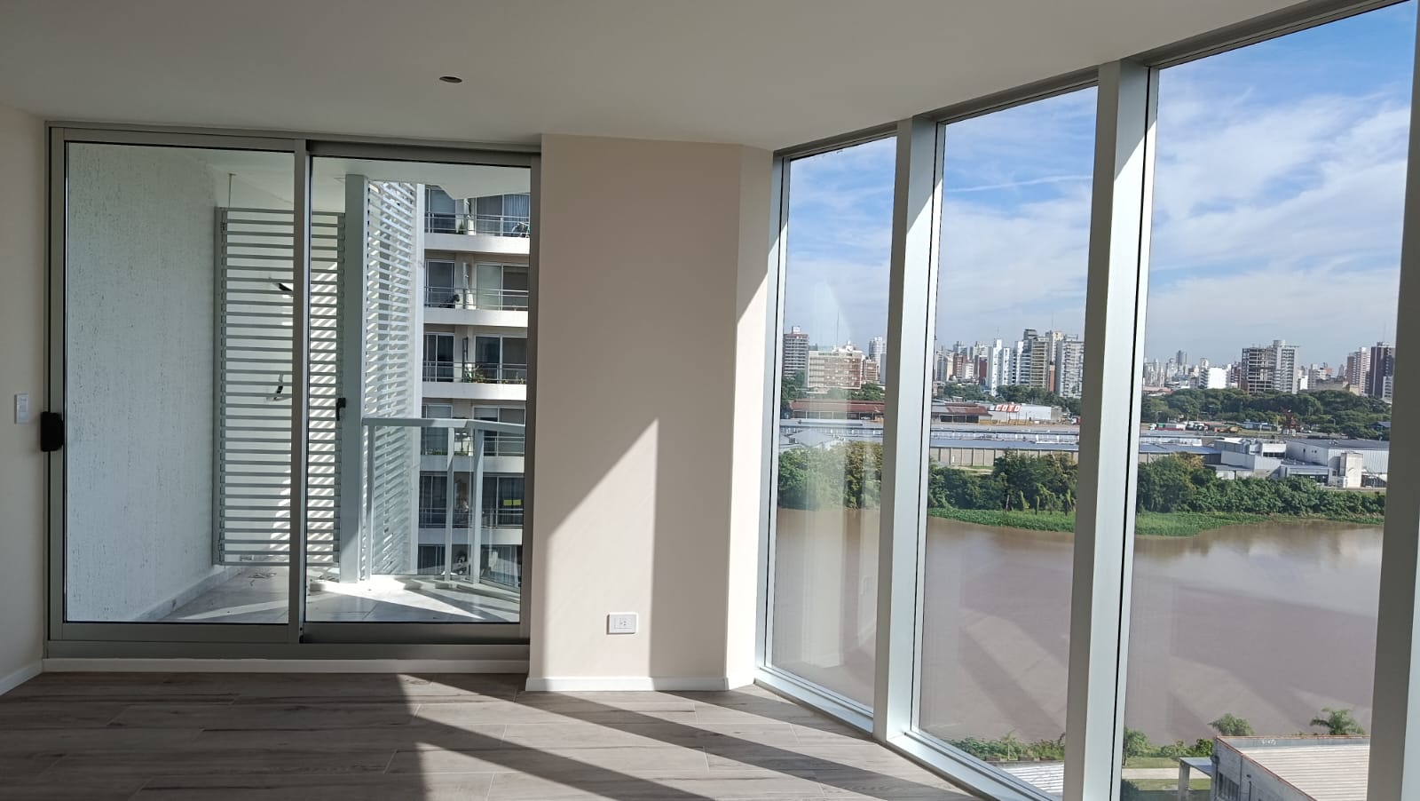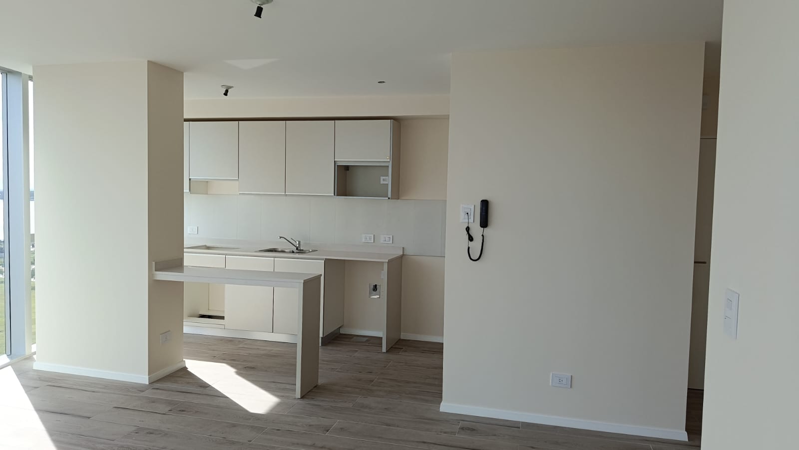 A estrenar: 1 dormitorio con placard con interiores, pisos de porcelanato, living-comedor muy luminoso, balcón, cocina sectorizada separada por barra desayunador, con mesada, alacenas, horno y anafe, baño, edificio con SUM, pileta. Cochera.