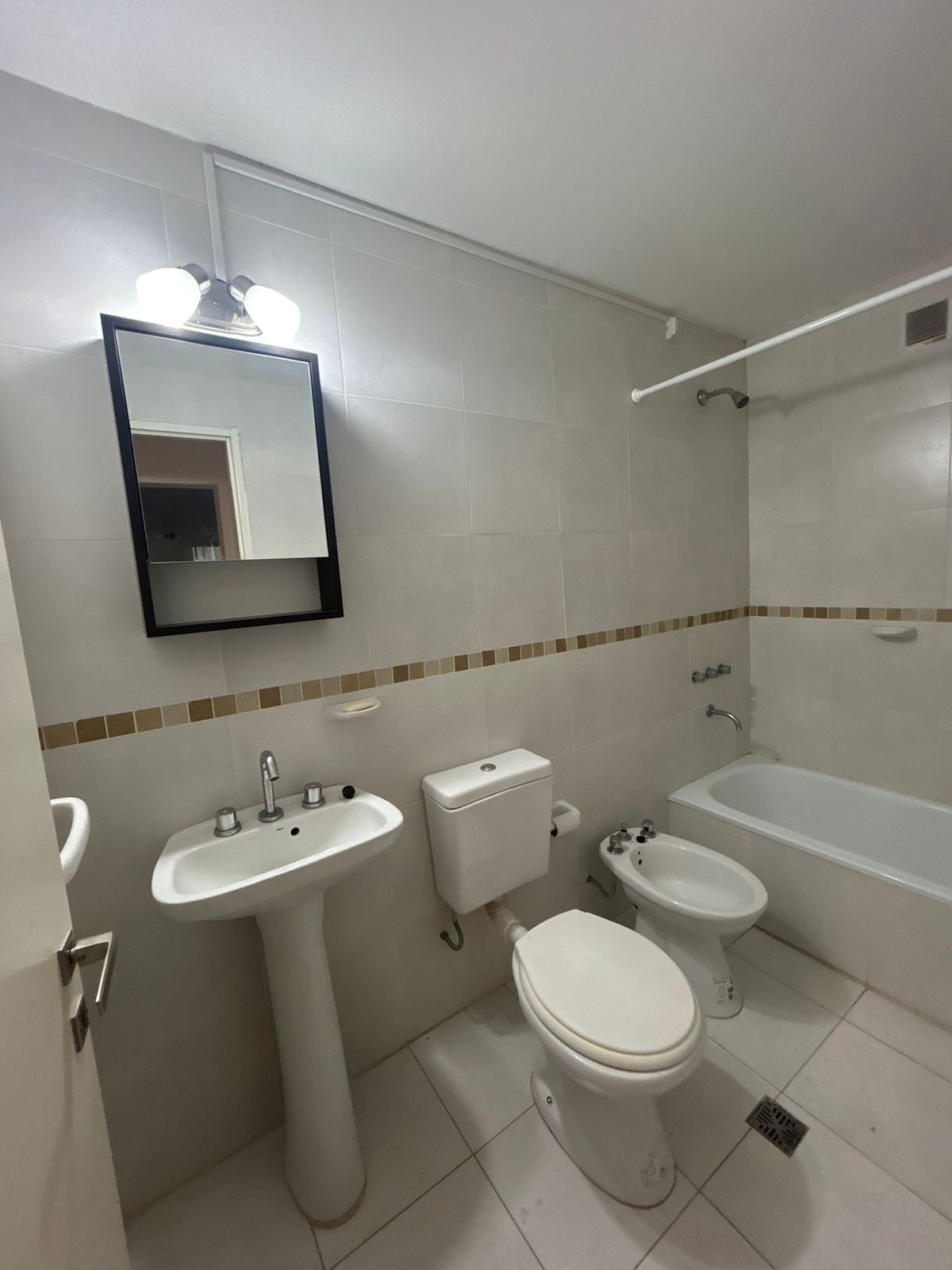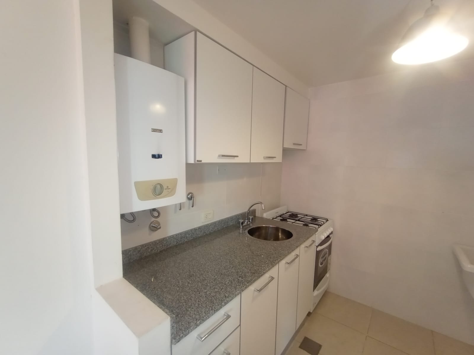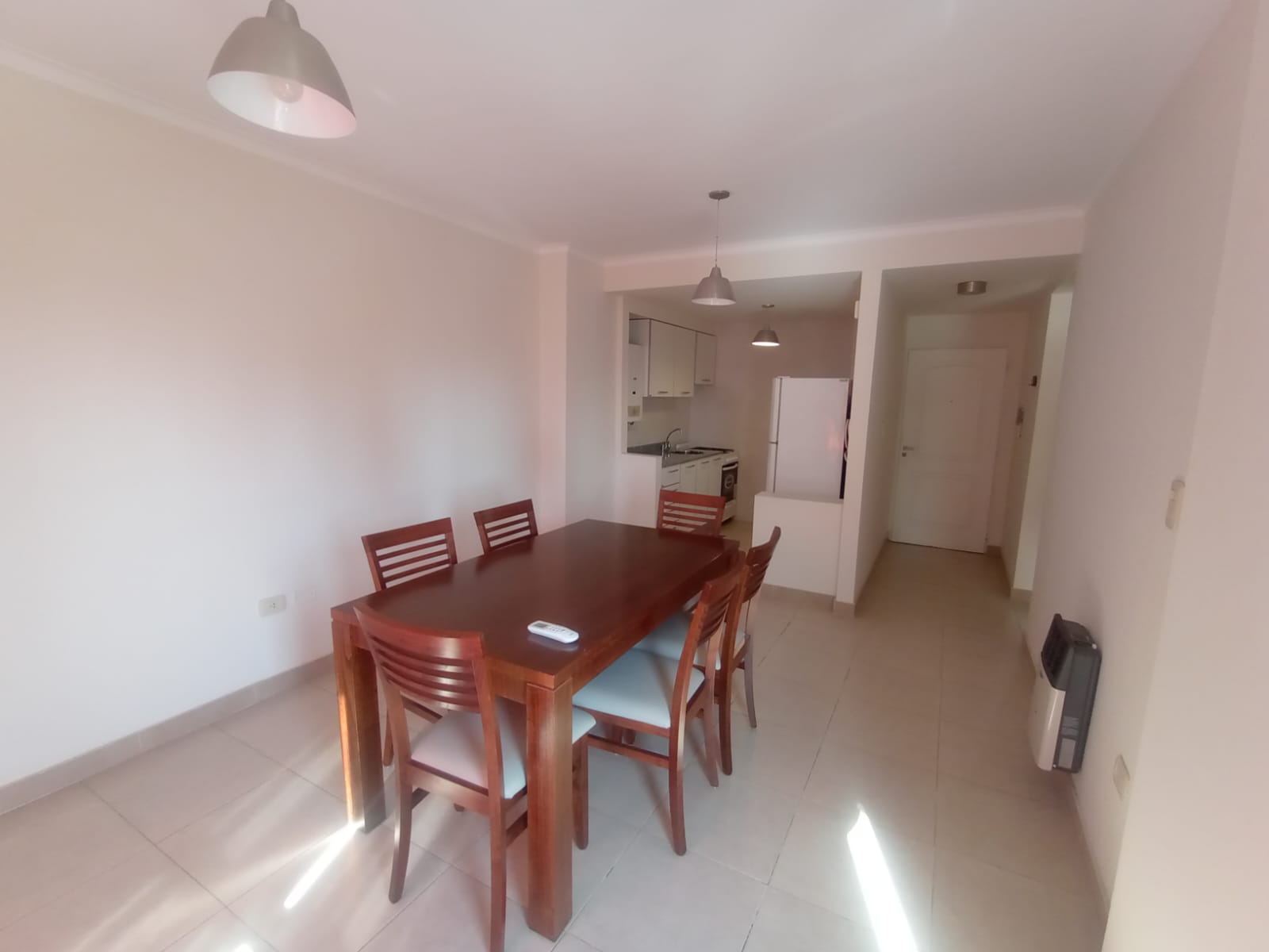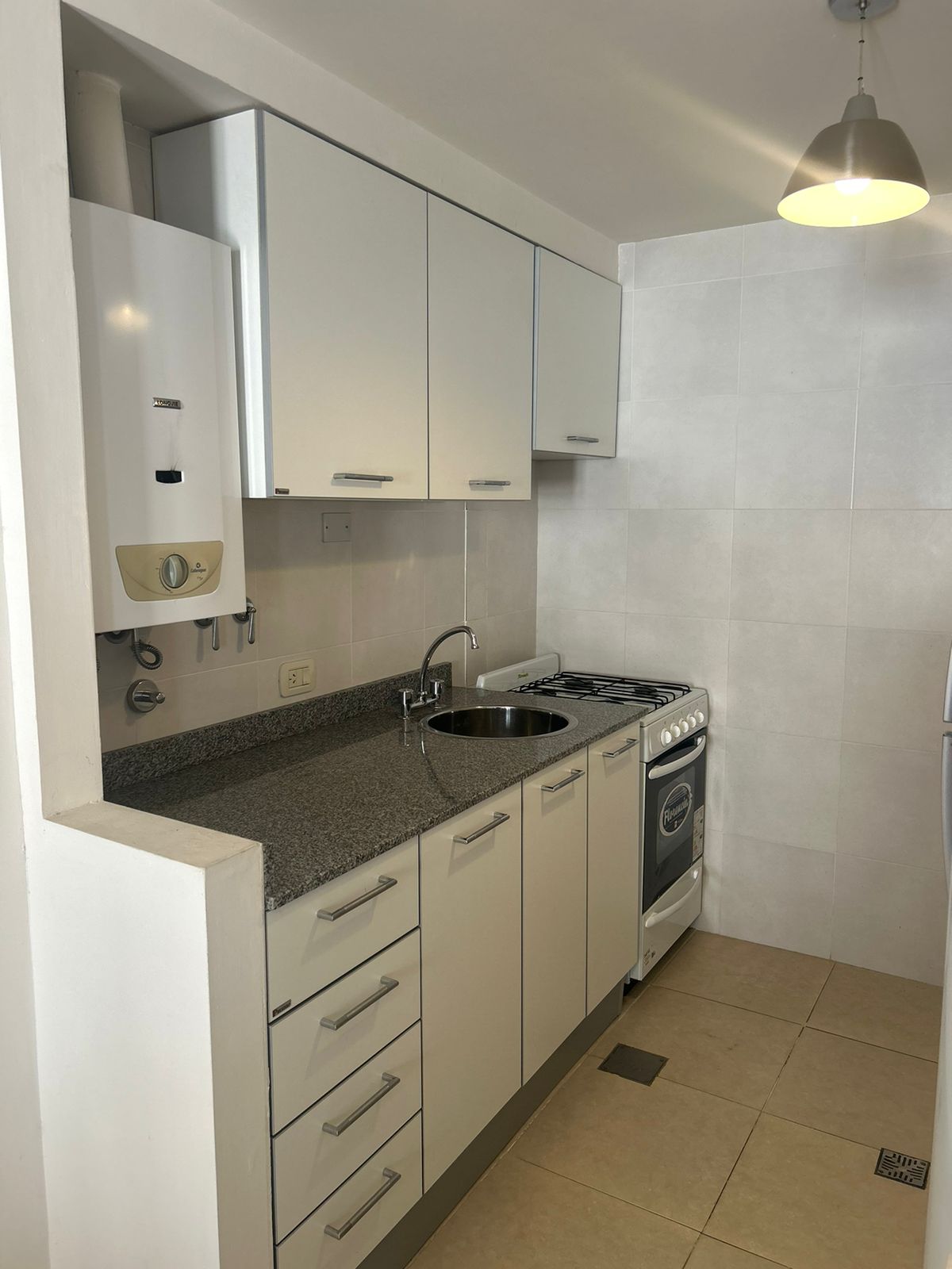 1 dormitorio con placard con interiores, amplio living-comedor con calefactor, aire acond., balcón, cocina con mesada, artefacto de cocina, alacena, 1 baño, agua caliente gas natural